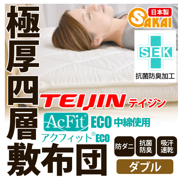 テイジンのアクフィット®ECO中綿使用の四層敷き布団。